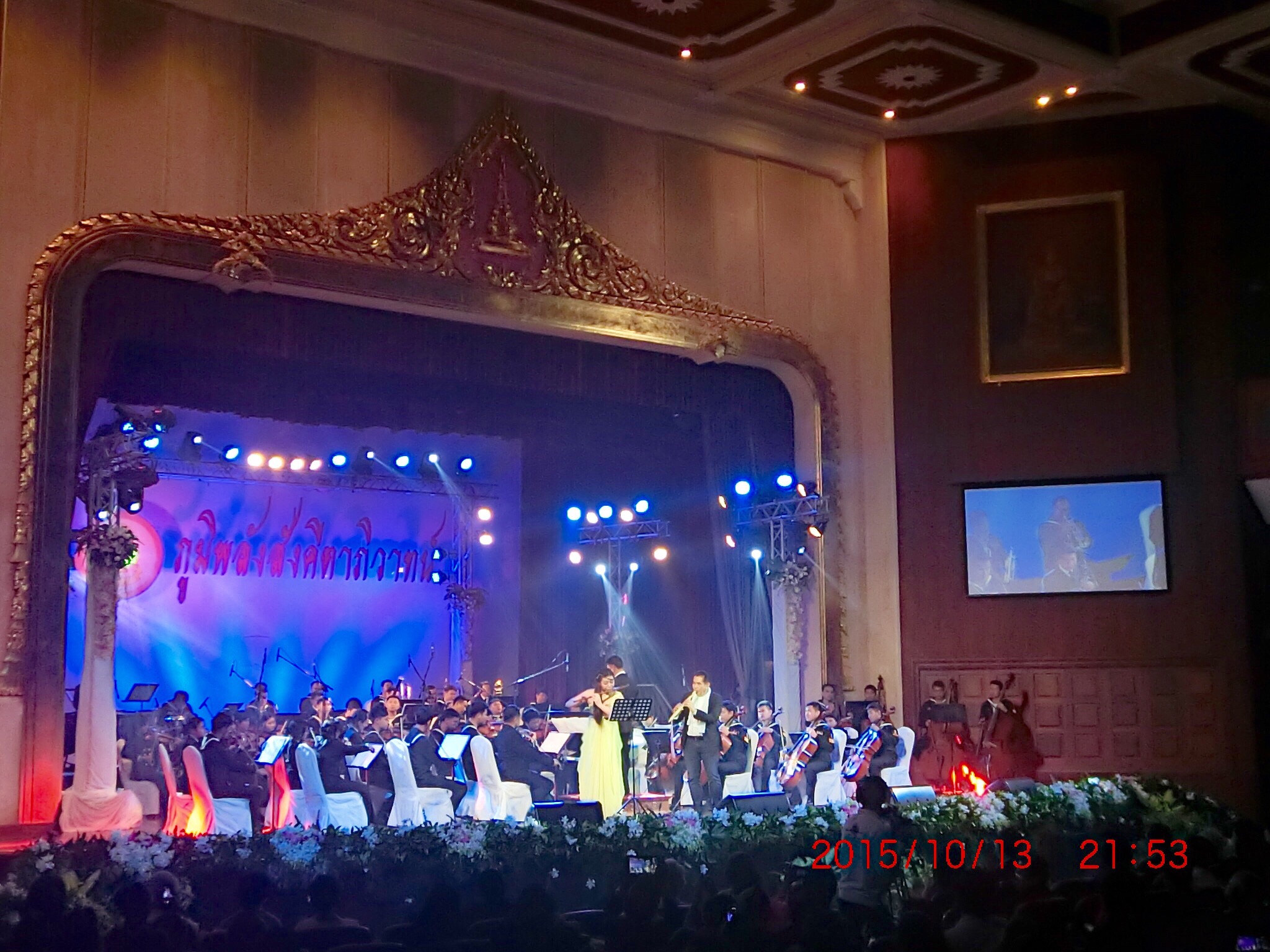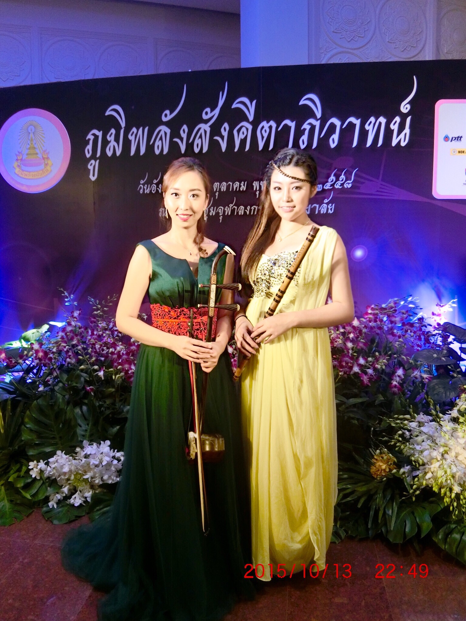 10月13日,由泰国中国文化中心与山东省联合举办的2015泰国“山东文化年”活动,经山东省文化厅与Beat365唯一官方网站协商,特邀我院二胡专业霍永康老师与竹笛专业二年级研究生宫媛赴泰国朱拉隆攻大学参加泰国诗琳公主60寿辰慈善音乐会的演出活动。此次演出汇集了泰国音乐届的国宝级大师,由泰国皇家海军管弦乐团担任伴奏。泰国政界、商界、中泰艺术交流中心人士及泰国皇室成员观看演出。
