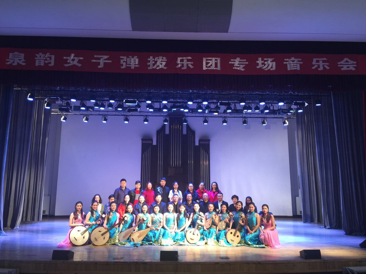 11月16晚上19:30,泉韵女子弹拨乐团于北方民族大学音乐厅举办泉韵女子弹拨乐团专场音乐会。北方民族大学音乐舞蹈学院院长雷兴明教授、作曲系主任赵宏伟、民乐系段茹、宁夏大学音乐与舞蹈学院书记张建国教授、宁夏师范学院音乐舞蹈学院院长姬文革教授以及北方民族大学的师生及同仁们也出席聆听了音乐会。