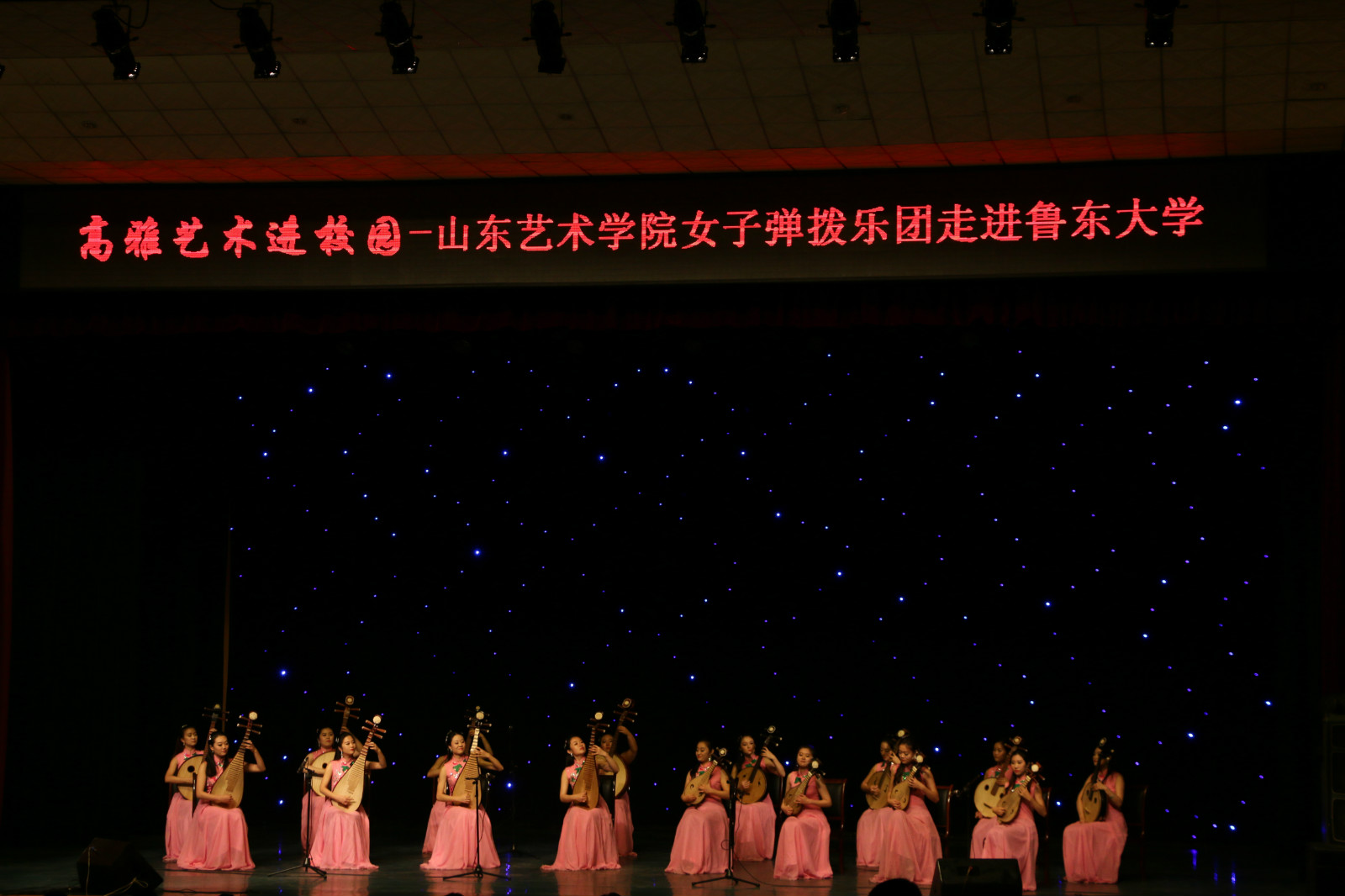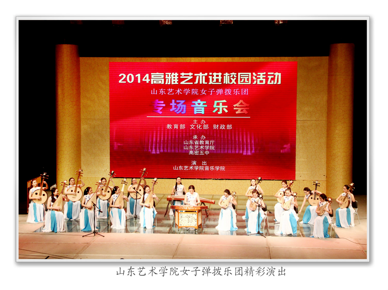 11月23日至26日,Beat365唯一官方网站女子弹拨乐团在高密五中、山东工商学院、烟台大学、鲁东大学等四所院校进行了高雅艺术进校园的演出活动。