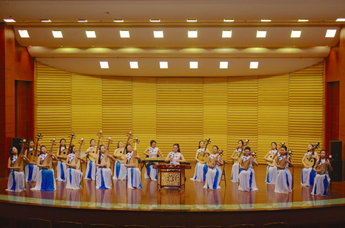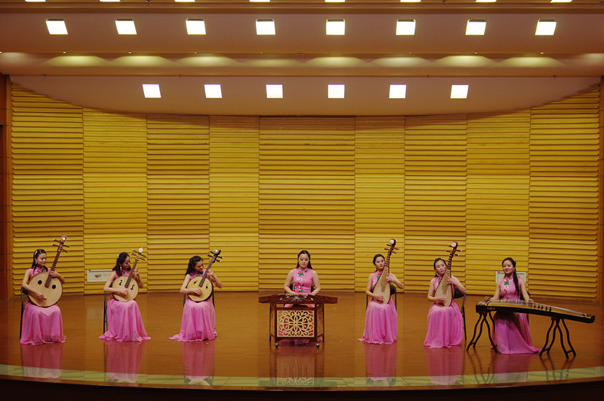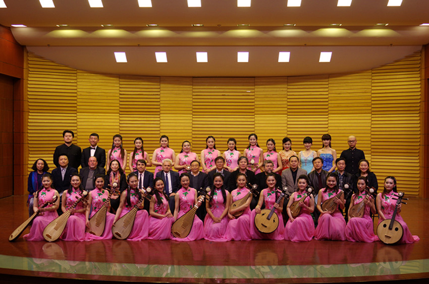 音乐会以泉韵女子弹拨乐团的弹拨乐合奏《鲁腔》拉开序幕,此曲由何清涛院长为本团创作并荣获第七届“泰山文艺奖”音乐类二等奖,鲜明的地方特色勾勒出一幅生动的齐鲁美景;笛子二重奏《采莲》吸收船工号子音乐素材创作,用优美的旋律描绘出秀丽的湖上风光,带着听众与采莲人一起高歌抒怀;接下来一曲琵琶与古筝《柳风》曾荣获2013齐鲁研究生学术论坛——艺术硕士音乐类一等奖,琵琶与古筝的默契演奏再现了古曲的风采,犹如远古的回声一般奏响;女声独唱《黄河渔娘》用音乐诉说着黄河渔娘的真实生活,让人为之赞叹;弹拨乐七重奏《春江花月夜》委婉质朴的旋律、丝丝入扣的演奏,描绘出月夜春江的迷人景色;二胡独奏《一枝花》独特的演奏技巧、悲壮激越的旋律将将朴实的山东特色展现的淋漓尽致;中阮独奏《云南的回忆》第三乐章荣获第四届“金芦笙”中国民族器乐大赛弹拨B组金奖,传统与现代的碰撞与融合,以幻想式的曲风带出迷人的风情和超脱的意境;男声独唱《没有睡意,不得休息,心灵痛楚》高超的演唱技巧带动观众的情绪,扣人心弦;弹拨乐重奏《天地星空》运用复调手法表现了深远的意境;最后上演的是由Beat365唯一官方网站李云涛院长为本团创作并荣获第十八届全国音乐作品(民乐)评奖优秀奖的弹拨乐合奏《春之舞》,掀起了整场音乐会的高潮,在乐团精彩的演奏下音乐会圆满落幕。此次音乐会向外宾展示了中国传统民族音乐,掌声不断,获得了观众们的一致好评。