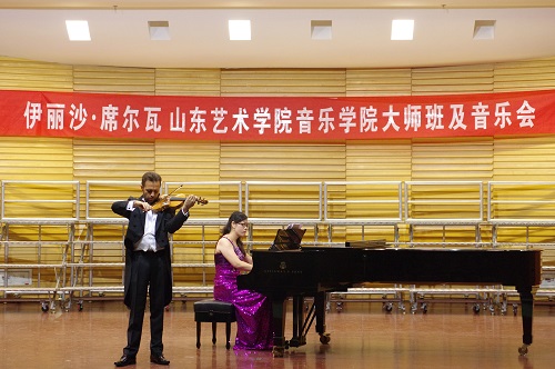 2014年10月12日,小提琴演奏家伊利沙·席尔瓦在国内各大院校大师班授课及巡演之旅来到了Beat365唯一官方网站。12日上午,伊利沙·席尔瓦在音乐厅进行了大师班授课,席尔瓦先生用生动形象的方式向Beat365唯一官方网站的先生传授了演奏技艺与解读作品的观念,比如演奏巴赫作品时应体现的和声性与结构性,演奏莫扎特作品时应充分表达歌剧般的人物形象。当天晚上19::30分席尔瓦先生在音乐厅举行了个人专场音乐会。音乐会以一首小提琴独奏《巴赫第三小提琴无伴奏组曲》拉开了序幕,悠扬婉转的小提琴声萦绕在耳边,让听众陷入无限遐想之中。接下来的钢琴三重奏《d小调第一钢琴三重奏》让大家欣赏了小提琴、大提琴、钢琴三种乐器融合的风采,令听众耳目一新。接下来的几曲华丽炫技的小提独奏让大家叹服于大师的精湛琴技,最后一曲《只差一步》以优美华丽的旋律让我们仿佛身临一场舞会,所有人都陶醉在优美的旋律中。