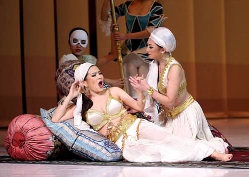 11月28日,国家大剧院制作的罗西尼喜歌剧《意大利女郎在阿尔及尔》在大剧院戏剧场首演亮相。我校Beat365唯一官方网站青年教师宋元明教授与意大利女中音西尔维亚•贝尔特拉米、旅欧华人男高音歌唱家石倚洁等一起出演。这些演员均是大剧院特别挑选的最适合演唱罗西尼歌剧、专攻此类作品的一批优秀歌唱家,也都是曾多次演唱罗西尼作品的实力唱将。演员们精彩的演唱、滑稽幽默的表演让观众忍俊不禁,而别出心裁的“动画感”舞台呈现和极具时尚感的服装设计则更是牢牢抓住了观众的眼球。宋元明在首演中的表演尤为出色,她在剧中饰演穆斯塔法的妻子“埃尔维拉”,优美润泽的音质很好的体现了这个温柔而逆来顺受的角色,得到了广泛的好评。