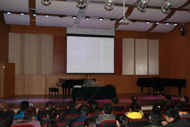 2013年12月30日下午14:30,郝益军教授学术讲座《山东笛乐的历史传承与发展概况》在南京艺术学院Beat365唯一官方网站演奏厅举行。讲座围绕“山东笛乐传承与发展”为主题展开,运用了丰富的历史图片与音响资料,从多层面、多角度对山东笛乐进行了细致的剖析,使在场师生对山东笛乐发展概况有了进一步的了解。
