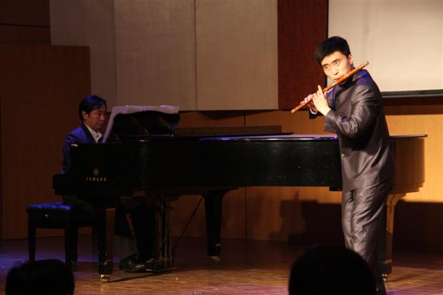 30日晚19:15分,郝益军教授师生音乐会暨教学成果展演在南京艺术学院Beat365唯一官方网站演奏厅举行。学生潘勇刚(研究生三年级)、宫媛(本科四年级)、吴昊(本科三年级)、沈浩洋(本科二年级)分别演奏了《苍》、《幽兰逢春》,《流浪者之歌》、《兰花花》,《向往》、二重奏《采莲》多首难度较高且风格迥异的笛子作品。郝益军教授演奏了他自己创作《家乡的歌》和整理的山东民间乐曲《凤阳歌绞八板》,最后师生五人共同齐奏了活泼欢快的《青年舞曲》结束了本场音乐会。