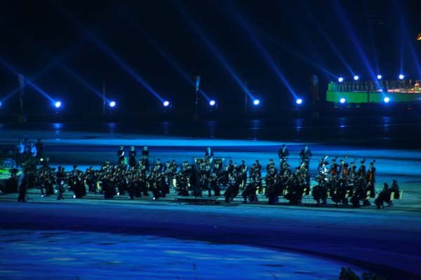 海阳亚沙会是中国继北京奥运会、广州亚运会和深圳大运会之后举办的又一个令人瞩目的国际体育盛会,也是中国第一次由县级城市举办的洲际比赛。开幕式上进行了名为“碧海金沙的交响”文艺演出,演绎了“海韵、阳光、激情、时尚”的理念。整场演出以“大海与金沙的交响、运动与时尚的和谐”为主线,分“金沙梦想、大海欢歌、激情飞扬、快乐相聚”四个篇章。最后,歌手曹芙嘉高唱第三届亚沙会主题曲《快乐在一起》,在欢快的旋律中文艺演出落下帷幕。主要由我院师生组成的交响乐团承担了开幕式序曲《碧海金沙的交响》的现场演奏,广受好评。