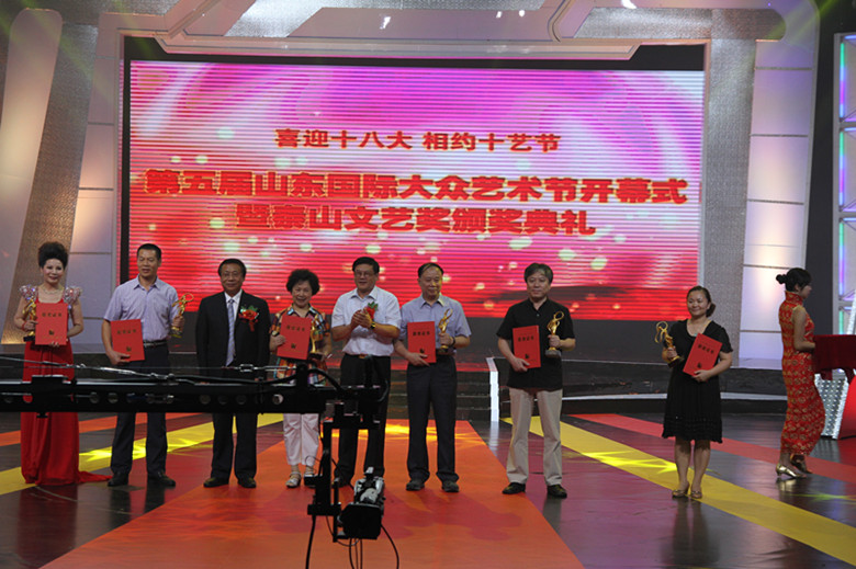 山东省“泰山文艺奖”是2007年由中共山东省委、山东省人民政府批准设立的全省文艺界综合性文艺奖,由省委宣传部、省文化厅、省广电局、省人保厅、省财政厅、省文联等部门组织评选,到目前已评选了五届。