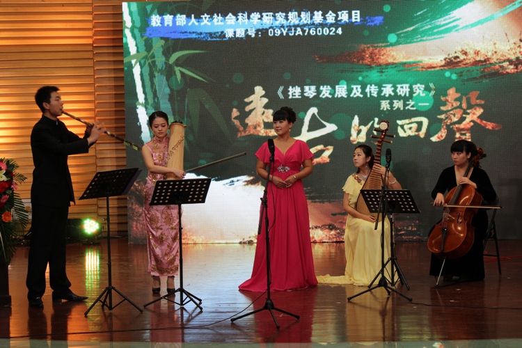 挫琴、古琴与钢琴《琴赋》由李云涛教授编创,音乐时而委婉如歌,时而跌宕起伏,如一位老者回望今生、与琴对赋;女声与民族小乐队《虞美人•听雨》由何清涛副教授编创,曲调优美动听、拨动心弦,犹如坐船流连忘返于秦淮河畔;宫芙艺副教授编创的挫琴与室内乐《玉娥郎》,曲调古朴、委婉、散韵交织,颇有回味;郭建勇副教授编创的挫琴与电贝司《古今对话》更是大胆采用新颖的表演形式,作品吸取了古曲《酒狂》的素材,让观众在古韵悠扬的气氛中,体会着不同音色的交织,由他编创的挫琴与扬琴《打秋千》则充满朝气与欢乐;姚怡副教授编创的挫琴、二胡与钢琴《秋思》,整首乐曲婉转细腻,展现了搓琴的拨与擦的演奏方法。