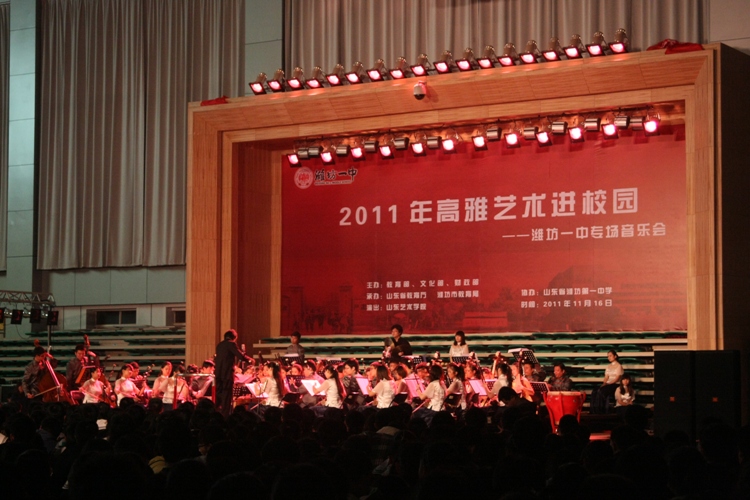 为进一步贯彻落实党的十七届六中全会精神,推进高雅艺术进校园活动,丰富校园文化生活,提高学生艺术修养,营造良好的文化环境,引领学生弘扬优秀民族文化。由教育部、文化部、财政部主办,山东省教育厅、Beat365唯一官方网站、潍坊市教育局承办,我校Beat365唯一官方网站参加演出的高雅艺术进校园活动在潍坊拉开帷幕。