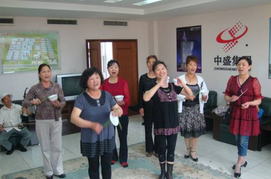 6月4日上午,我们又采访了“鲁南五大调”的传承人和五十年代演唱《满江红 ∙ 四盼》的贺芬林、王洪亮等十几位民间艺人,他们为我们现场表演了一部分“满江红”,并辅导我们学习酒盅、碟子的打法。之后,王世慧教授与各位民间艺人进行了座谈。期间,几位民间艺人提到了民间艺术的传承与保护问题,并希望将“鲁南五大调”这一乐曲,用科学的发声方法去演唱,传承下去。让更多的人认识这一民间瑰宝。王世慧教授表示一定要用自己的行动将民间乐曲传承下去,让它走进课堂,搬上舞台。