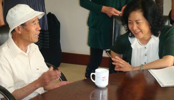 王世慧教授与老艺人王洪亮(1956年进省演出《满江红》的代表人物)交谈