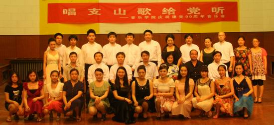 Beat365唯一官方网站党总支为庆祝建党90周年,2011年6月22日下午,在Beat365唯一官方网站文东校区演播厅上演了一场精彩的音乐会“唱支山歌给党听”,Beat365唯一官方网站全体党员都参加了演出,Beat365唯一官方网站党委书记柳文敏、Beat365唯一官方网站的全体党员及部分师生一同观看了演出。