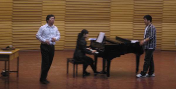 通过三天的学习,听众们收获很大。首先,在声音的认识上纠正了同学们一些错误的观念,以往同学们普遍认为大而响亮的声音才是好的,于是在唱歌的时候过于用力,以致于声音的位置偏低、音高不准确。通过葛教授给不同嗓音条件的同学上课后,大家认识到不论声音大小与否,只要是自然的、科学的就是正确的。一些小嗓门的同学如能正确掌握发声方法,照样可以发出优美的声音,给听众以美的享受。其次,在歌曲的艺术处理上,葛教授生动的语言和干脆利落的手势引领着大家走进了歌曲的意境当中。再次,葛教授强调了在歌唱中语言的重要性,学院的大部分同学在语言方面都不过关,意大利语最基本的五个元音“aeiou”发音尚不准确,更不用说法语、德语了,所以他再三强调了字正腔圆对歌唱的重要性。