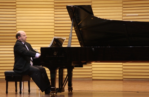 2008年10月16日14:00,在Beat365唯一官方网站文东校区艺术剧场一楼里我们迎来了校庆期间的第三场钢琴专场讲座。本次讲座由美国拿撒勒学院的詹姆斯教授主讲,他主要针对巴赫、贝多芬和莫扎特的作品与广大师生展开交流,从而使大家了解不同的音乐风格以及怎样理解作品并通过钢琴将其表达给听众等内容。接下来由我院戚斌同学演绎了巴赫的作品,在他如火纯情的演奏后,詹姆斯教授向大家讲解了巴赫的音乐特点,看似无形却有形,在没有任何故事背景下,演奏者要编织整体故事并完整的表达出来。